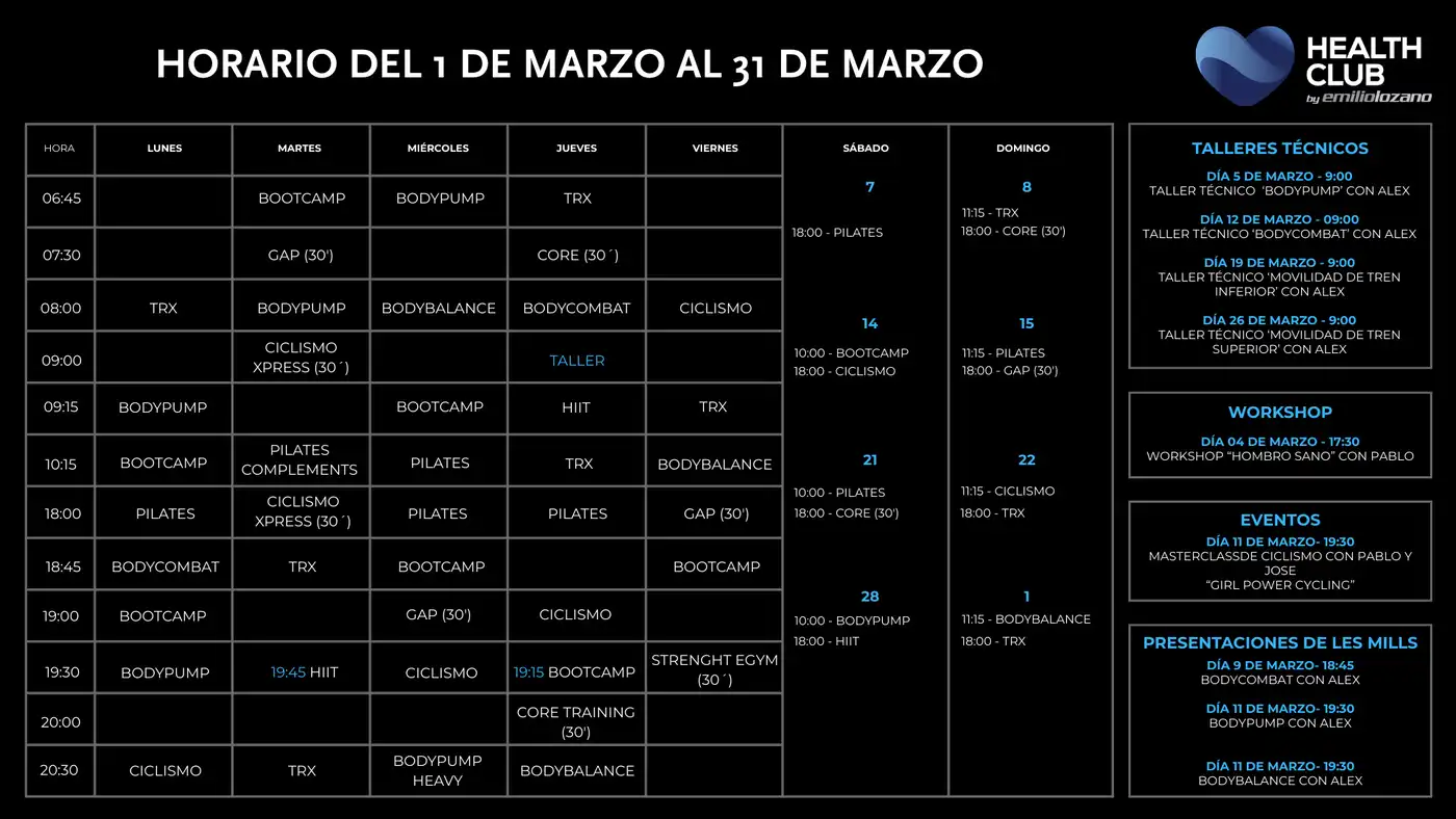 • Clases dirigidas con Les Mills, Zumba y Boxing.