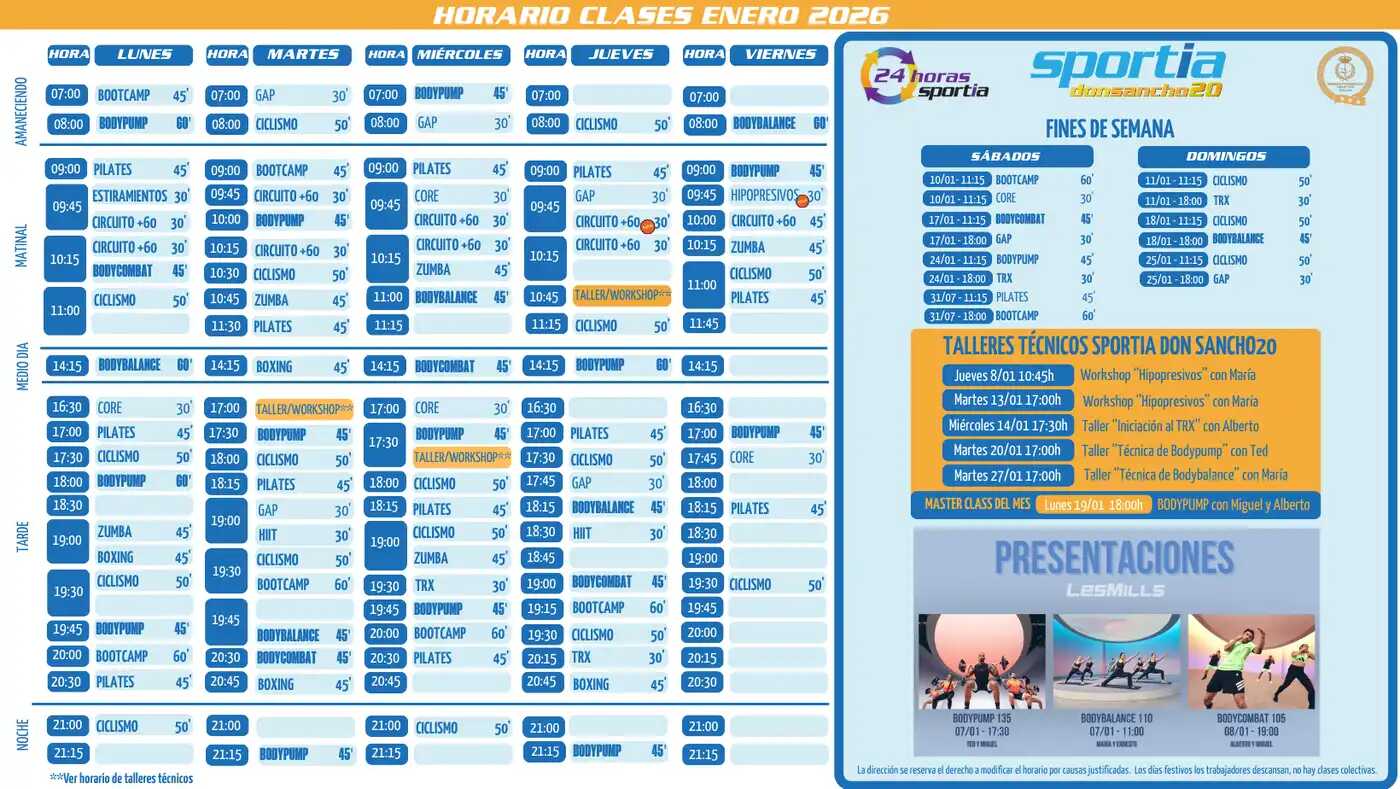 • Clases dirigidas con Les Mills, Zumba y Boxing.